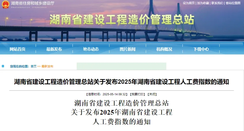注意!2025年湖南省建設(shè)工程人工費指數(shù)發(fā)布,6月1日起執(zhí)行!